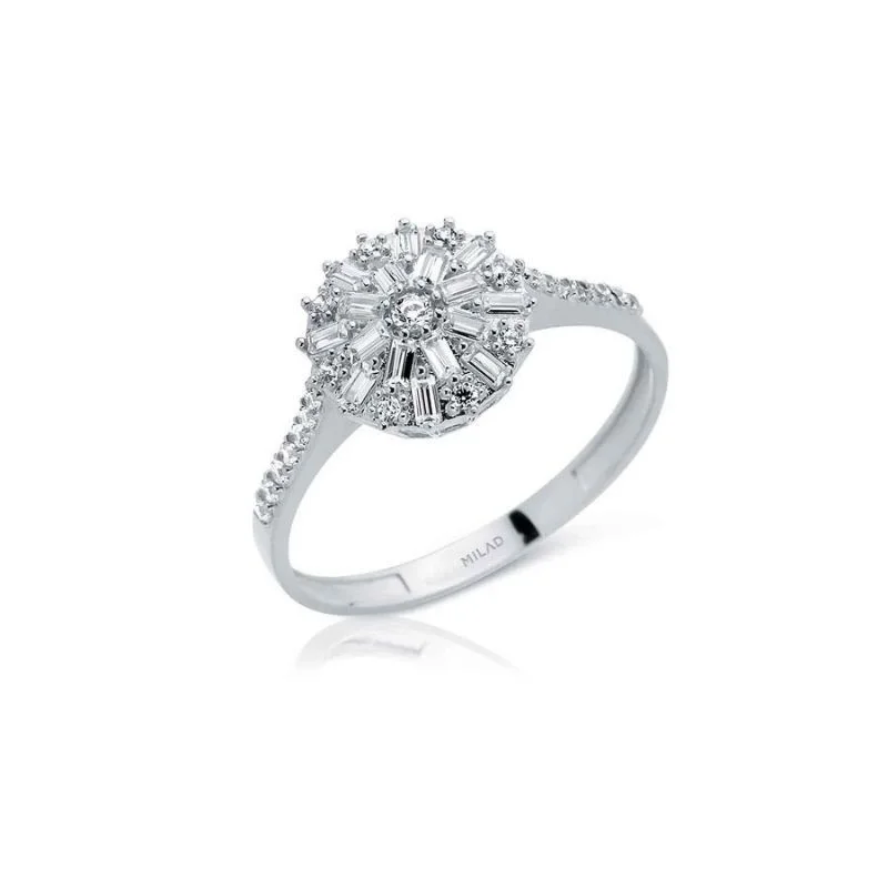 Beyaz Altın Yan Taşlı 14 Ayar Yüzük