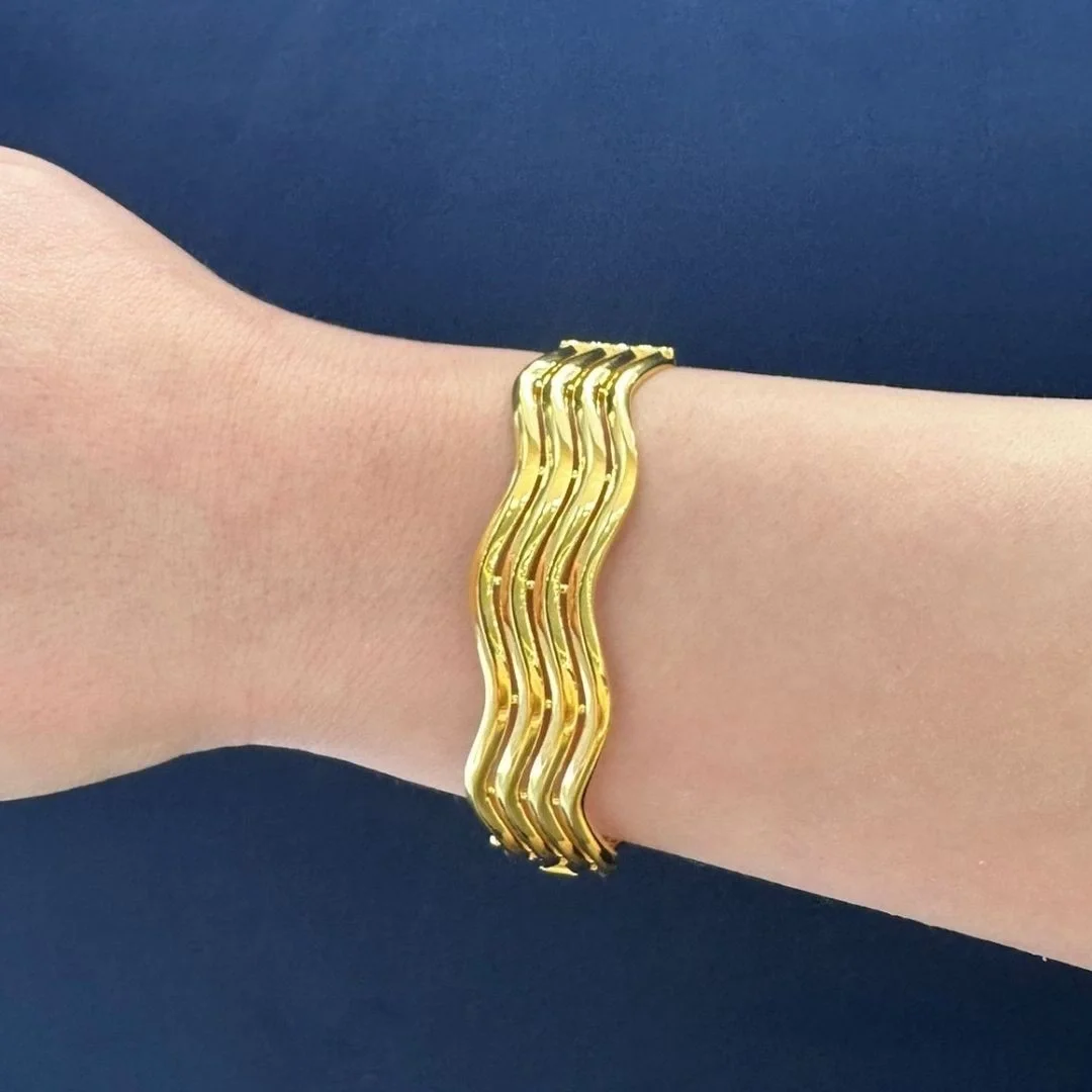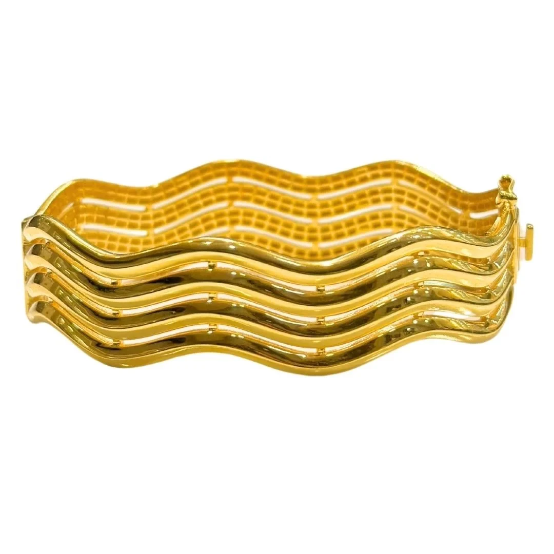 Dalgalı ajda 14 ayar altın kelepçe, altın takılar dünyasında hem klasik hem de modern bir duruş sergileyen özel bir tasarımdır. Ajda deseninin dalgalı hatlarla birleşimi, bileğe zarif ve hareketli bir görünüm kazandırır.