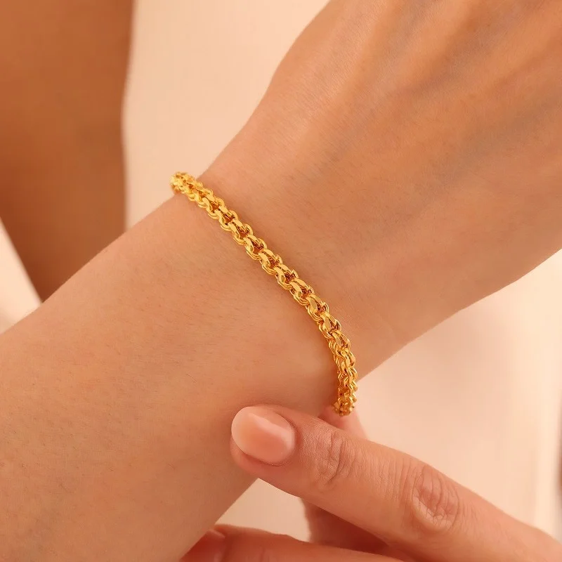 Güverse 14 ayar altın bileklik, geleneksel ve modern çizgileri bir araya getiren, hem günlük hayatta hem de özel anlarda kullanabileceğiniz, asil ve göz alıcı bir mücevherdir. Güverse modelinin karakteristik dokusu ve 14 ayar altının ışıltısı, bu bilekliği her tarza uyum sağlayan, özel bir aksesuar haline getirir.