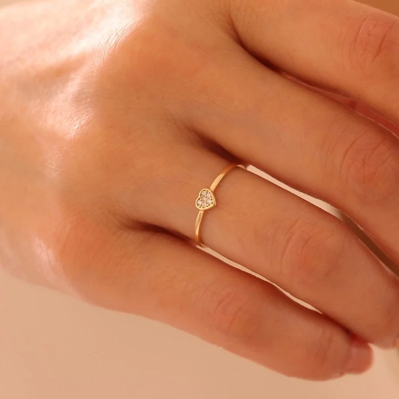 Kalp minimal 14 ayar altın yüzük, aşkın en saf ve zarif halini yansıtan, hem günlük hayatta hem de özel anlarda kullanabileceğiniz, şık ve anlamlı bir mücevherdir. Minimalist tasarımı sayesinde her tarza uyum sağlayan bu yüzük, sevginizi ifade etmenin en güzel yollarından biridir.