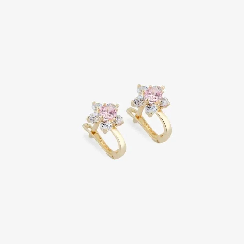 Pembe Taşlı Çiçek 14 Ayar Çocuk Küpesi