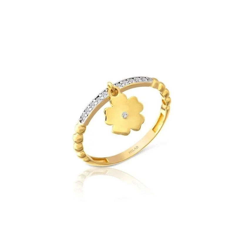 Taşlı Çiçek Sarkıt 14 Ayar Yüzük