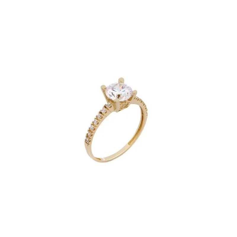Yan Taşlı 14 Ayar Tektaş Yüzük