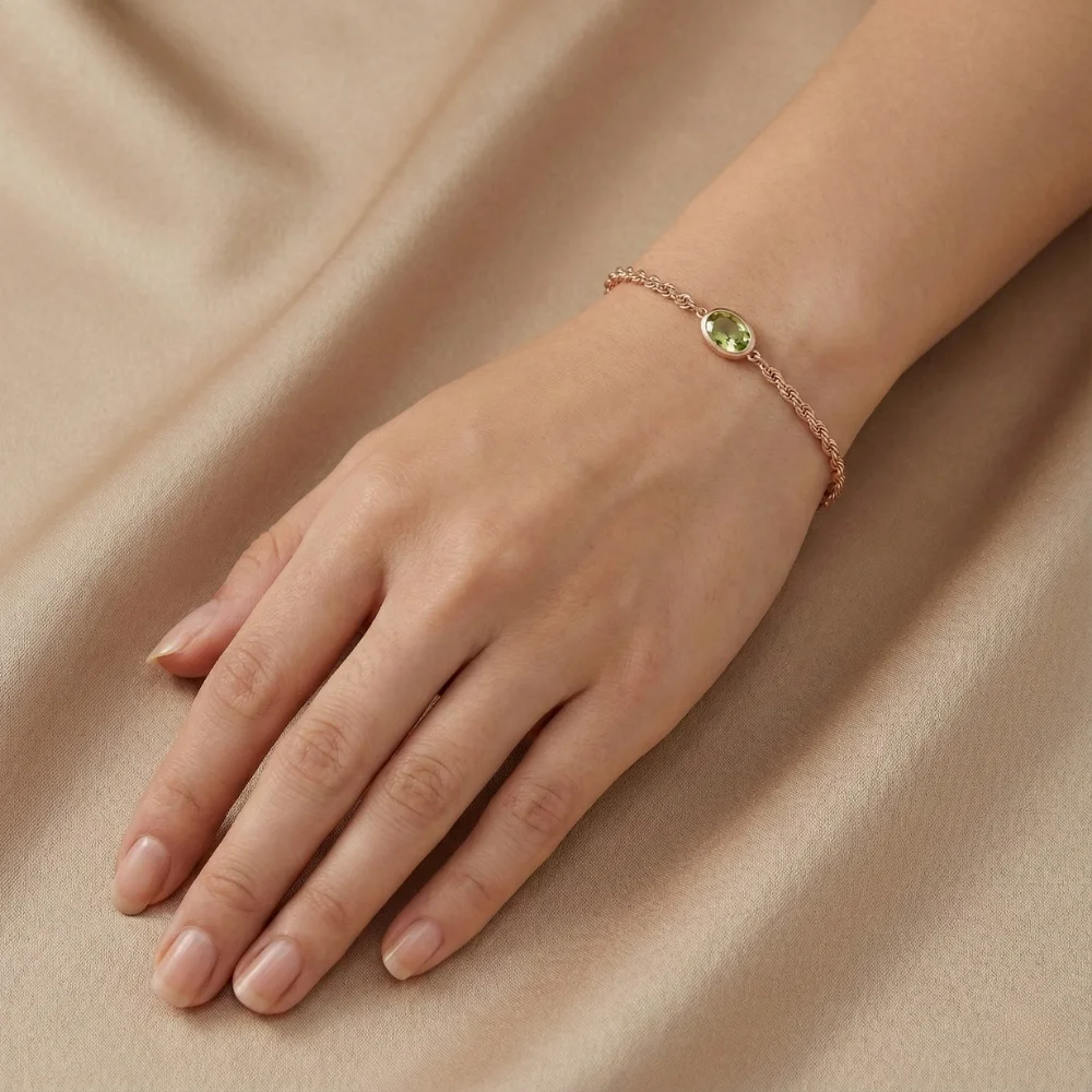 Yeşil taş detaylı olan bu bileklik, hem günlük kullanıma hem de özel günlerde tercih edebileceğiniz şık bir aksesuardır. Sağlam yapısı sayesinde uzun yıllar kullanabilirsiniz.