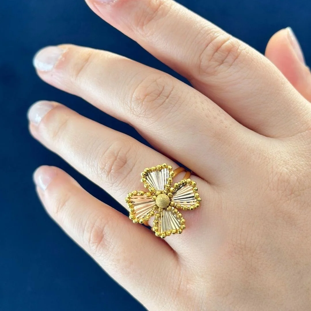 Yonca model 14 ayar altın yüzük, şansın ve uğurun sembolü olan yonca yaprağının zarif bir şekilde altınla buluştuğu, hem anlamlı hem de estetik bir takı seçeneği. Dört yapraklı yoncanın her bir yaprağının ayrı bir anlam taşıdığına inanılır: ümit, inanç, sevgi ve şans.